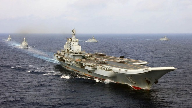 Tàu sân bay Liêu Ninh tập trận vào tháng 4/2018.