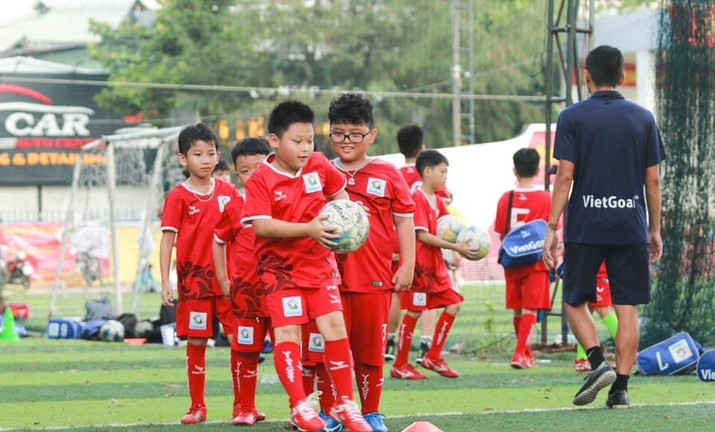 Các em học sinh ở Tân Binh được tập luyện bóng đá tại điểm VietGoal.