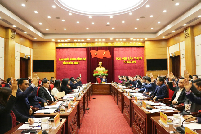 Liên quan đến công tác sắp xếp tinh gọn bộ máy, Ban Chấp hành Đảng bộ tỉnh Hòa Bình thống nhất kết thúc hoạt động của 8 Đảng đoàn, 3 Ban Cán sự Đảng, Đảng bộ Khối các cơ quan tỉnh. Đồng thời thành lập 2 Đảng bộ trực thuộc Tỉnh ủy là Đảng bộ các cơ quan Đảng tỉnh và Đảng bộ UBND tỉnh.