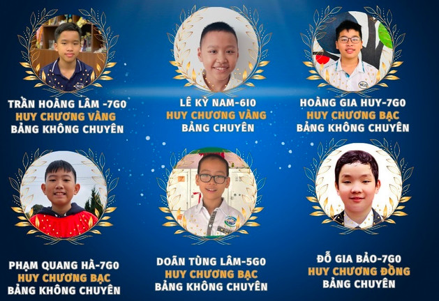 Ở bảng không chuyên, 4 học sinh lớp 7G0, gồm: Trần Hoàng Lâm giành Huy chương Vàng; Hoàng Gia Huy, Nguyễn Quang Hà, Doãn Tùng Lâm giành Huy chương Bạc.
