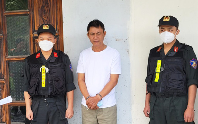 Cảnh sát đọc lệnh bắt giam Đào Đức Hạnh (áo trắng).