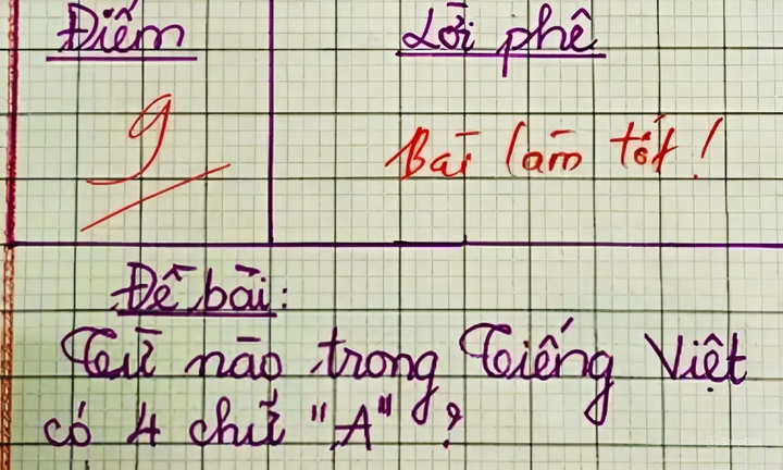 Nếu tìm ra đáp án cho câu đố "từ Tiếng Việt nào có 4 chữ A?" trong thời gian ngắn nhất, hãy kéo xuống bình luận để ghi lại và xem có bao nhiêu người cùng suy nghĩ như bạn.