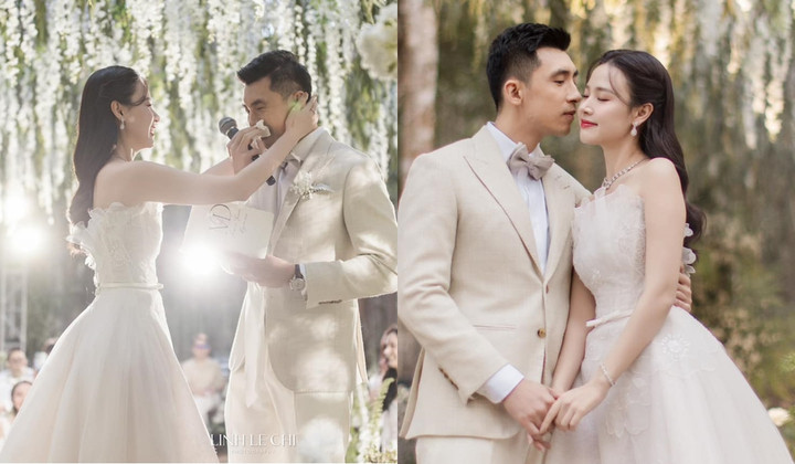 Trong tiệc cưới bí mật tại Đà Lạt, chú rể kém 1 tuổi quỳ gối cầu hôn Midu, người đẹp cho biết đây là lần thứ hai anh cầu hôn cô.