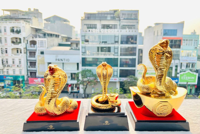 Tượng rắn mạ vàng tiền triệu chờ khách rước về chơi Tết Ất Tỵ 2025