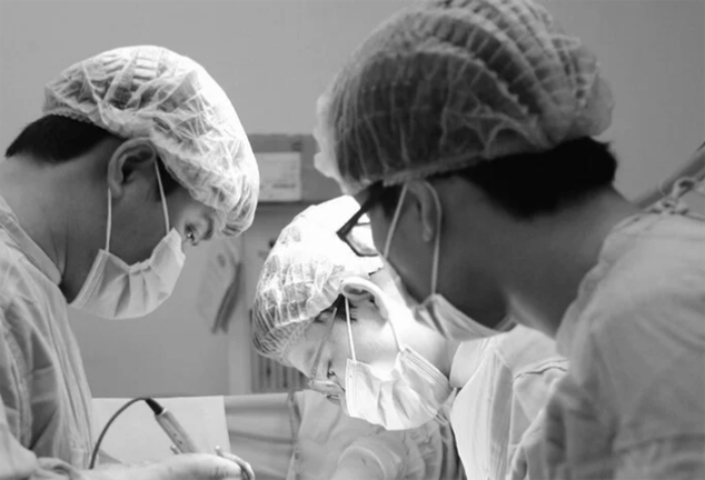 Các bác sĩ phẫu thuật cho bệnh nhân.
