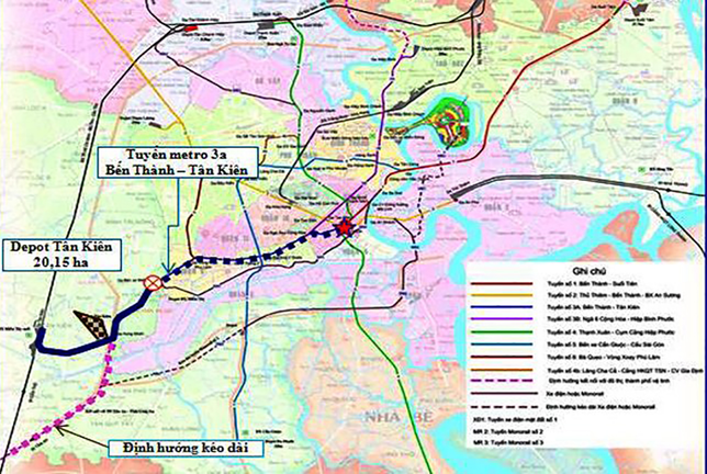 Tuyến Metro số 3A Bến Thành - Tân Kiên được UBND TP.HCM đăng ký Danh mục các dự án sử dụng vốn vay ODA của Chính phủ Nhật Bản giai đoạn 2016 - 2018. Dự kiến hoàn thành vào năm 2026 với lưu lượng hành khách giai đoạn đầu khai thác là 218.500 hành khách/ngày, mở rộng giai đoạn 2 đến năm 2030 là 408.800 hành khách/ngày và đạt 561.300 khách/ngày vào năm 2050.