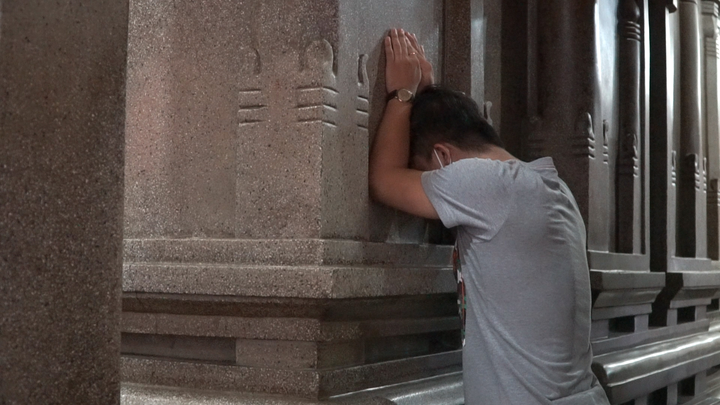 Úp mặt vào đá cầu nguyện trong ngôi đền Ấn Độ ở TP.HCM