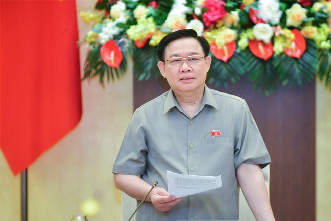 Chủ tịch Quốc hội Vương Đình Huệ phát biểu tại phiên họp thứ 25 của Ủy ban Thường vụ Quốc hội.