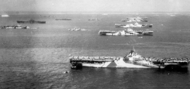 Các tàu sân bay Mỹ tại đảo Ulithi năm 1944. (Ảnh: Hải quân Mỹ)
