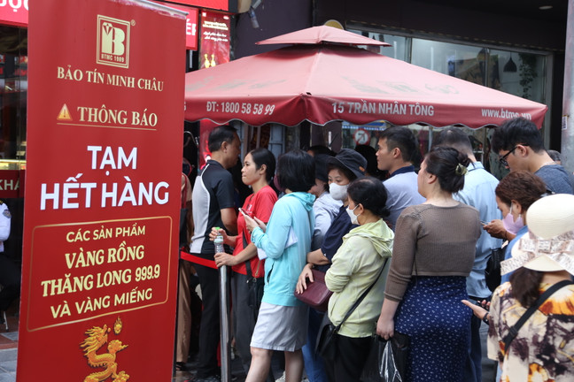 Sáng 17/10, giá vàng vẫn tăng rất mạnh, vượt 152 triệu đồng/lượng, người dân tiếp tục xếp hàng từ sớm chờ mua, bất chấp cửa hàng tạm dừng bán vì hết vàng.
