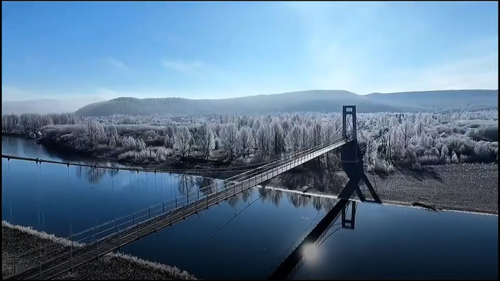 Thành phố Genhe ở Nội Mông, Trung Quốc bị sương muối cứng màu trắng bao phủ tạo thành khung cảnh như giữa mùa đông.