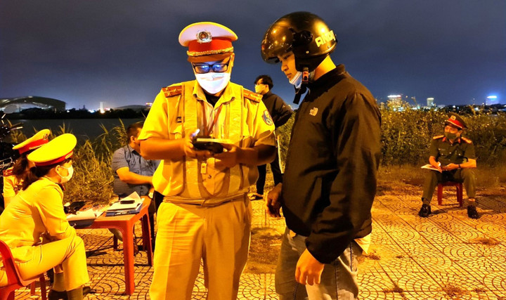 Lực lượng Cảnh sát Giao thông công an TP Đà Nẵng kiểm tra nồng độ cồn người điều khiển phương tiện tham gia giao thông.