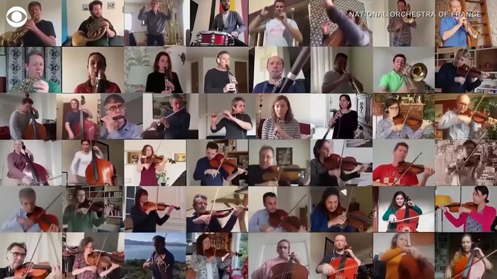 Trang CBS News mới đây đăng tải buổi biểu diễn đặc biệt của các nhạc công người Pháp giữa đại dịch Covid-19. Theo đó, do phải thực hiện cách ly xã hội nên mỗi nghệ sĩ sẽ phải tuân thủ ở nhà. 49 chiếc màn hình đã cùng nhau ghi lại những giai điệu lạc quan trong mùa Covid-19.