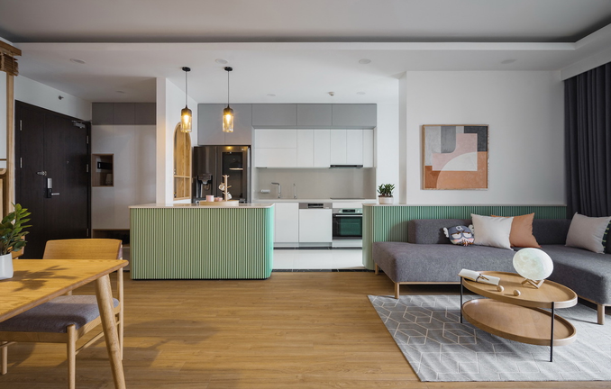 Căn hộ ba phòng ngủ rộng 102 m2 ở Minh Khai, Hà Nội được hoàn thiện đầu năm 2020.