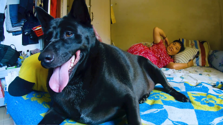 Chó đen nặng 41 kg là “con cưng” của gia đình ông Nguyễn Thanh Long (Cần Thơ) không chỉ biết nghe lời, nịnh chủ mà còn kỹ tính, đặc biệt chú chỉ ngủ chung với chủ.