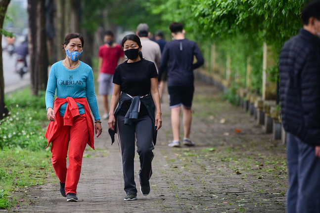 Nhiều công viên của Hà Nội đóng cửa, tạm ngừng hoạt động phòng COVID-19, không có chỗ giải trí, nhiều người đã đổ ra đường để tập thể dục.