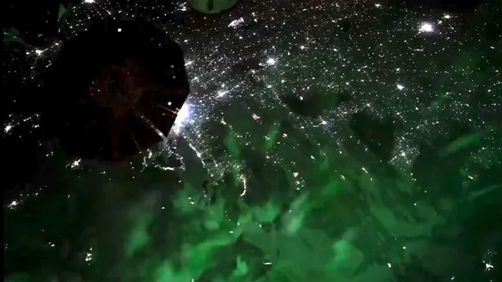Video dài 9 giây và được phi hành gia Don Pettit chia sẻ trên mạng xã hội X vào ngày 6/1 cho thấy ánh sáng xanh lục của cực quang được tạo ra do sự tương tác của nhiều hạt tích điện từ Mặt trời kết hợp cùng từ trường của Trái đất.