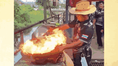 Một quả cầu lửa phun ra từ chảo dầu, đầu bếp ở Thái Lan phản xạ cực nhanh, uốn cong lưng tránh ngọn lửa vào mặt.
