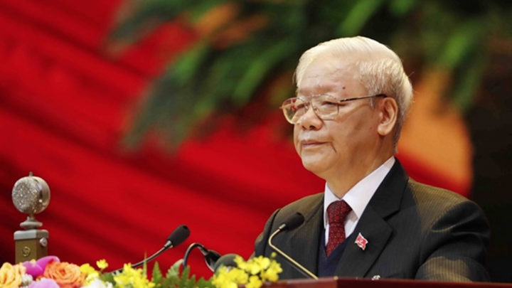 Tổng bí thư, Chủ tịch nước Nguyễn Phú Trọng trình bày Báo cáo của Ban chấp hành trung ương khóa XII về các văn kiện trình Đại hội XIII của Đảng.
