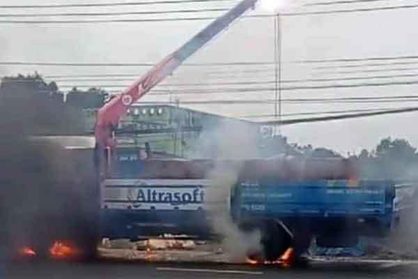 Video: 'Tường lửa' xuất hiện khi cần cẩu vướng vào dây điện cao thế