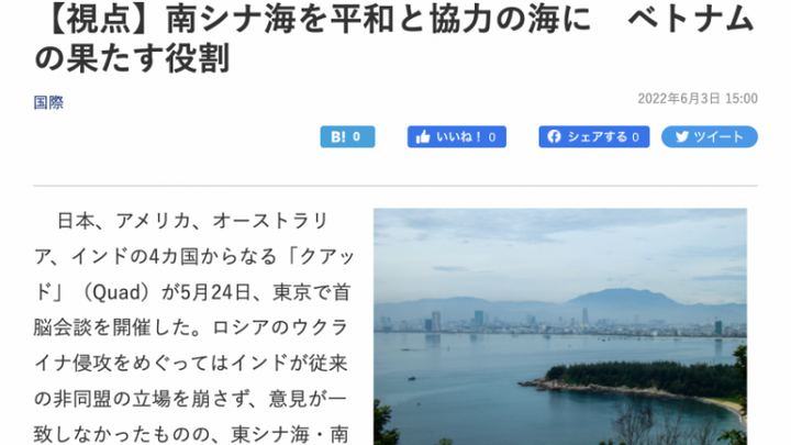 Trang báo mạng Data-Max của Nhật Bản vừa qua có bài viết về vai trò của Việt Nam trong việc biến Biển Đông trở thành vùng biển hòa bình và hợp tác.