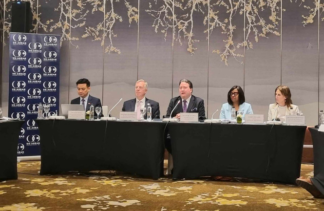 Chủ tịch kiêm Tổng Giám đốc USABC Ted Osius nhận định, cơ hội trước mắt của các doanh nghiệp bao gồm các chương trình chiến lược mà Việt Nam đang tham gia trong quá trình chuyển đối số, chuyển đổi xanh, tiến tới đạt được các cam kết net zero, nâng cao vị thế thông qua chuỗi cung ứng toàn cầu bằng cách tăng cường năng lực sản xuất, cơ sở hạ tầng.