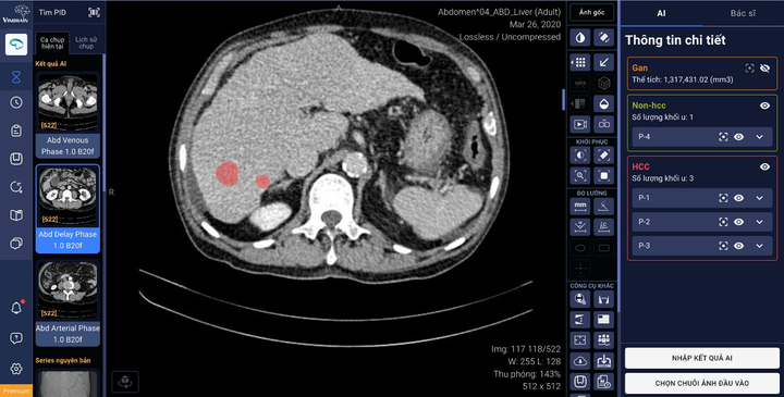 DrAid™ hỗ trợ tính năng tự động khoanh vùng và phân loại tổn thương gan ứng dụng trí tuệ nhân tạo, kết nối trực tiếp với phần mềm quản lý hình ảnh của bệnh viện (PACS).