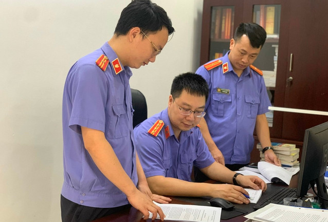 Cán bộ, kiểm sát viên Viện KSND huyện Vĩnh Tường thực hiện nhiệm vụ. (Ảnh: Báo Vĩnh Phúc).