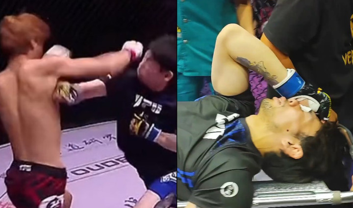 Võ sĩ Nhật Bản bị đối thủ Trung Quốc hạ gục trong 13 giây, rời sân bằng cáng