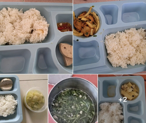 Trước đó, trên mạng xã hội chia sẻ hình ảnh và nội dung phản ánh khay cơm trưa có giá 30.000 đồng của giáo viên trường mầm non Ánh Dương chỉ có cơm và 2 miếng chả lụa, kèm ít nước mắm. Một số khay khác có cơm và vài miếng thịt xào măng.
