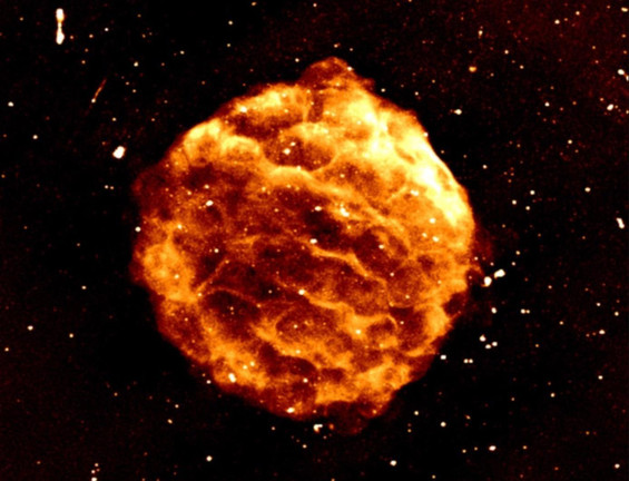 Hình ảnh mô phỏng tàn tích siêu tân tinh được đặt tên G261.9 + 5.5, cách Trái Đất khoảng 10.000-15.000 năm ánh sáng và khoảng một triệu năm tuổi. Sự kiện lần đầu được phát hiện năm 1967 bằng kính viễn vọng Parkes.