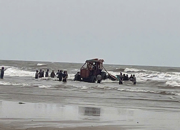 Hiện lực lượng chức năng mới cứu hộ được một tàu vào bờ, hai tàu nằm ngoài biển. (Ảnh: CTV)