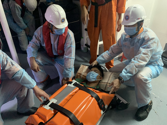 Trước tình hình trên, chính quyền địa phương chủ động liên lạc khẩn cấp, yêu cầu Trung tâm Phối hợp tìm kiếm cứu nạn hàng hải Việt Nam có phương án đưa 2 bệnh nhân vào đất liền.