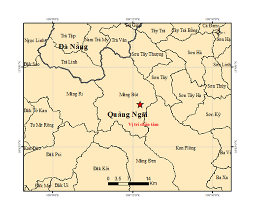 Cụ thể, trận động đất có độ lớn 3.6 độ richter, xảy ra khoảng lúc 14h48, có tọa độ 14.883 độ Vĩ Bắc, 108.274 độ Kinh Đông, độ sâu chấn tiêu khoảng 8,1 km.
