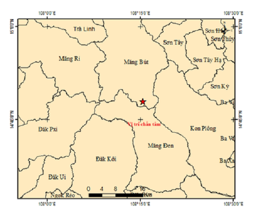 Xã Măng Bút ở Quảng Ngãi xảy ra trận động đất có độ lớn 3,3 độ Richter, độ sâu chấn tiêu 8,1km.