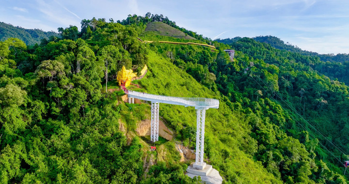 Hạng mục hành lang có mái che hình rồng vắt qua núi dài nhất Việt Nam là tổ hợp 2 công trình gồm hành lang mái che hình rồng và cầu kính. Trong đó, hành lang Rồng Thiêng với biểu tượng hình rồng có diện tích xây dựng hơn 1.260m2, chiều cao công trình từ 3,73m đến 8,85m.