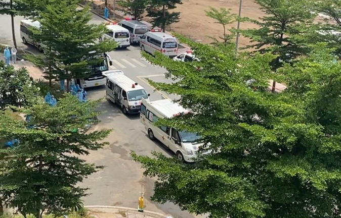 Ngày cũng như đêm, lượng xe cấp cứu chở các F0 triệu chứng nhẹ đến đây rất nhiều và đội ngũ y bác sĩ phải thay nhau túc trực để đón nhận bệnh nhân.