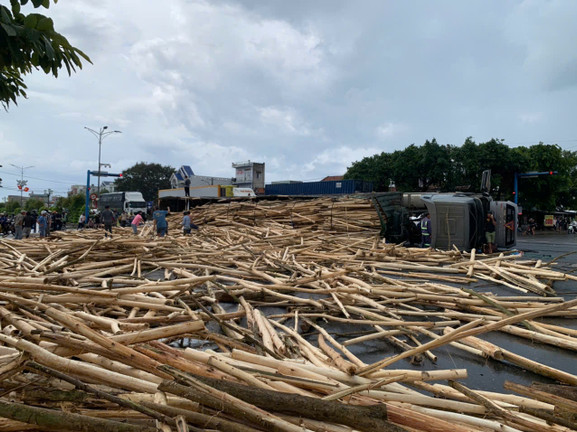 Thông tin ban đầu, khoảng 14h10, xe đầu kéo BKS 61H-104.50 kéo theo rơ-moóc 98R-031.88 do ông Lê Văn Yên (SN 1985, xã Sơn Hòa, tỉnh Đắk Lắk) lái, chở theo vợ cùng gỗ keo, đi theo hướng Bắc - Nam.