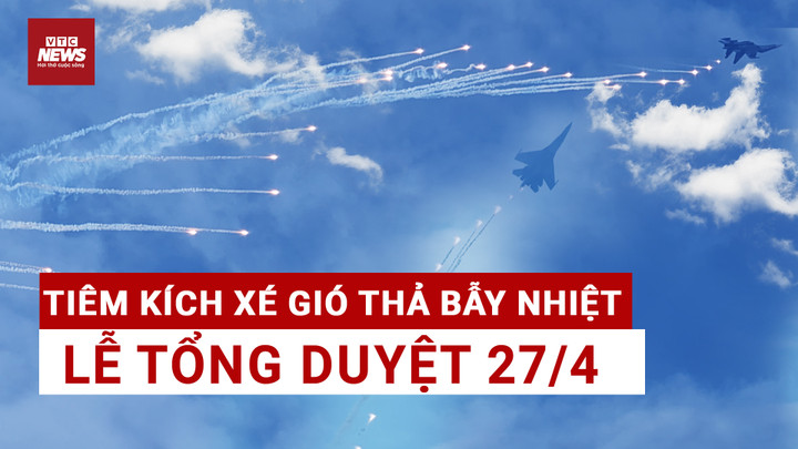 7 chiếc tiêm kích Su-30MK2 thả bẫy nhiệt trong lễ tổng duyệt diễu binh, diễu hành kỷ niệm 50 năm giải phóng miền Nam thống nhất đất nước.