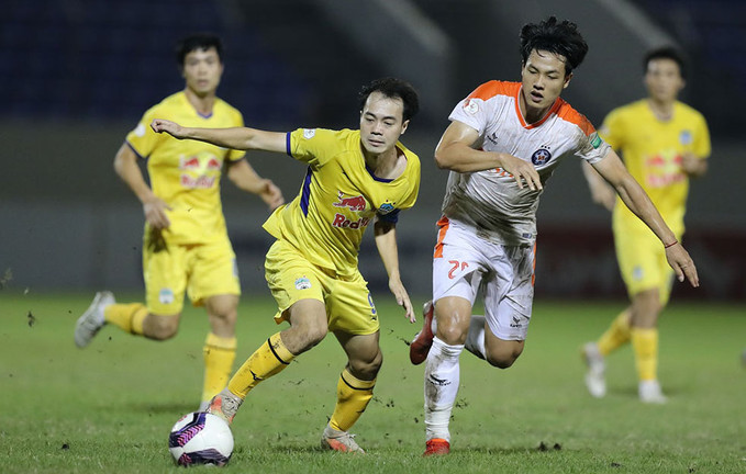 HAGL (áo vàng) không thắng 10 trận gần nhất.