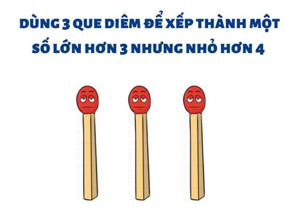 Xếp 3 que diêm để được số lớn hơn 3 nhưng nhỏ hơn 4