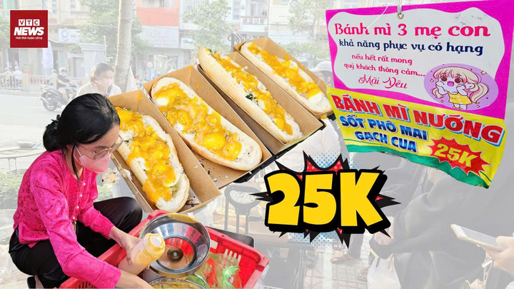 Bánh mì gạch cua 25.000 đồng bán vỉa hè tại TP.HCM đang khiến cộng đồng mạng "dậy sóng" khi hàng dài người xếp hàng chờ đợi thưởng thức.
