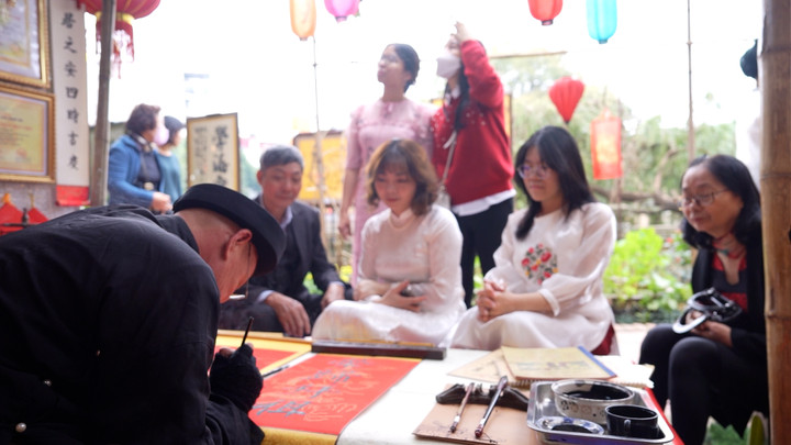 Ngày đầu năm mới, nhiều người tới Văn Miếu Quốc Tử Giám (Hà Nội) để xin chữ cầu may.