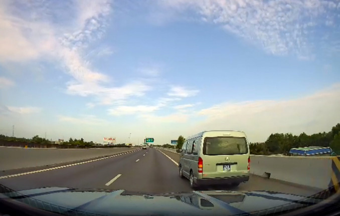 Tài xế P. lái ô tô biển xanh chạy vào làn khẩn cấp trên cao tốc TP.HCM - Trung Lương để vượt xe cùng chiều, hành vi này bị người đi đường ghi hình.