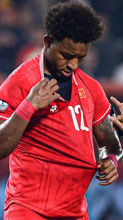Áo của tiền đạo Xuân Son bị rách toạc sau pha va chạm ở trận bán kết 2 AFF cúp tối 29/12 trên sân Việt Trì.