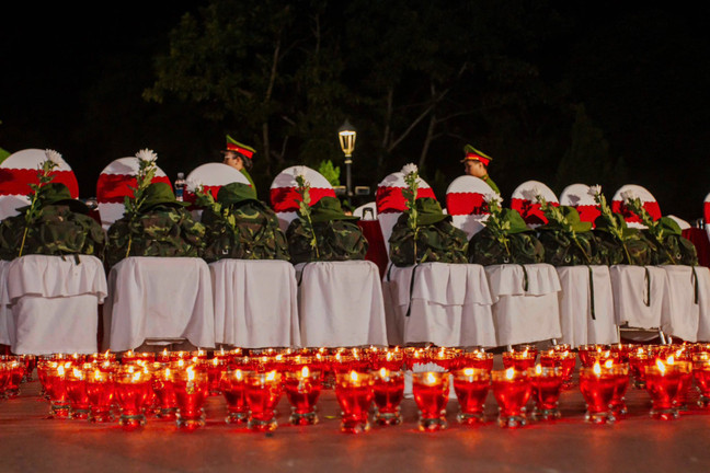 Trong buổi chiếu phim "Mưa đỏ" ở Thành cổ Quảng Trị, hình ảnh hàng ghế đầu tiên chỉ có những chiếc ba lô và chiếc mũ tai bèo gây xúc động.