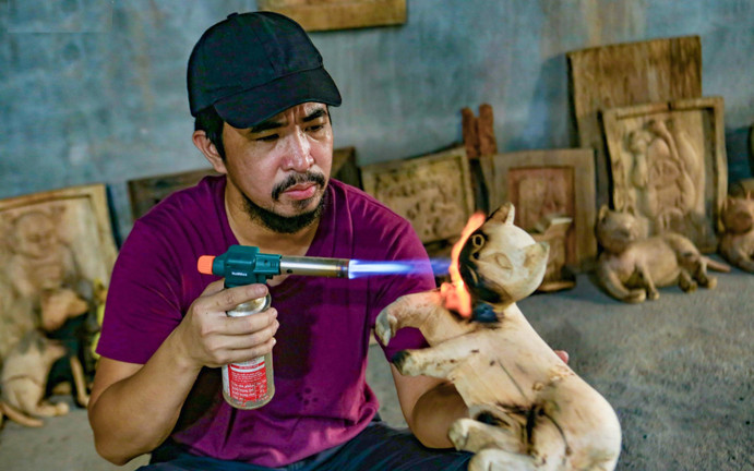 Những ngày này, nghệ nhân Nguyễn Tấn Phát (ở Sơn Tây, Hà Nội) đang miệt mài tạo ra những tác phẩm linh vật mèo độc bản để phục vụ khách hàng chào đón Tết Qúy Mão 2023. Để tạo nên sản phẩm mèo độc bản, nghệ nhân Phát phải thực hiện rất nhiều công đoạn khác nhau. Đặc biệt, tất cả các công đoạn đều được làm bằng tay.