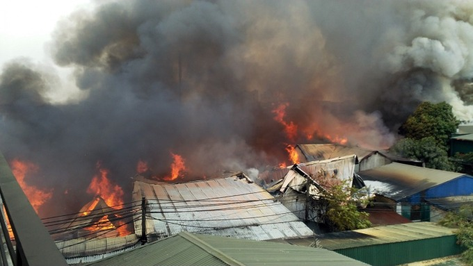 Người dân dùng nước, bình chữa cháy dập lửa nhưng bất thành. Do bên trong phân xưởng công ty chứa nhiều dụng cụ dễ cháy nên ngọn lửa bùng cháy dữ dội.