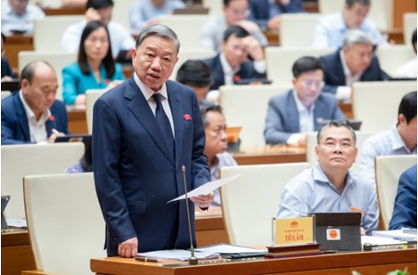 Bộ trưởng Bộ Công an Tô Lâm trả lời chất vất trước Quốc hội.