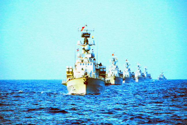Các tàu thuộc Lữ đoàn 167 thuộc Vùng 2 Hải quân huấn luyện triển khai đội hình trên biển. (Ảnh: Báo Hải quân Việt Nam)